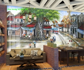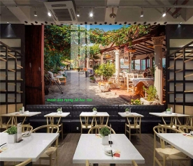 Tranh dán tường cho quán cafe n2003-359 được in theo kích thước yêu cầu.