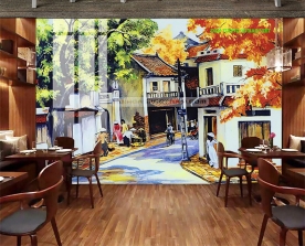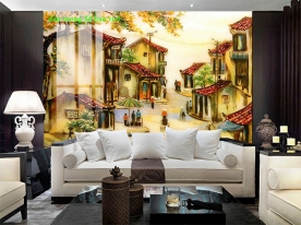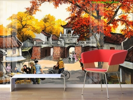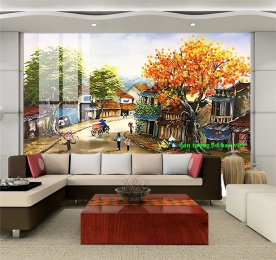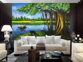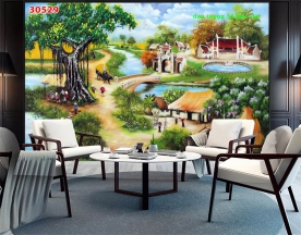 Tranh dán tường đồng quê n2004-234 được in theo kích thước yêu cầu.