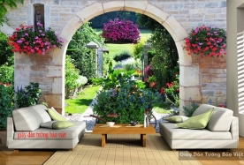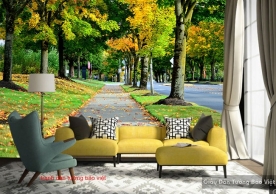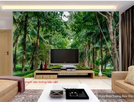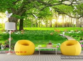 Tranh dán tường phong cảnh thiên nhiên màu xanh v086